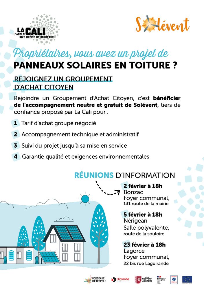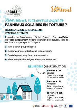 Solévent accompagne les particuliers pour leur permettre de rejoindre un groupement d’achat citoyen pour l’achat de panneaux solaires en toiture, et bénéficier de conseils neutres et gratuits.