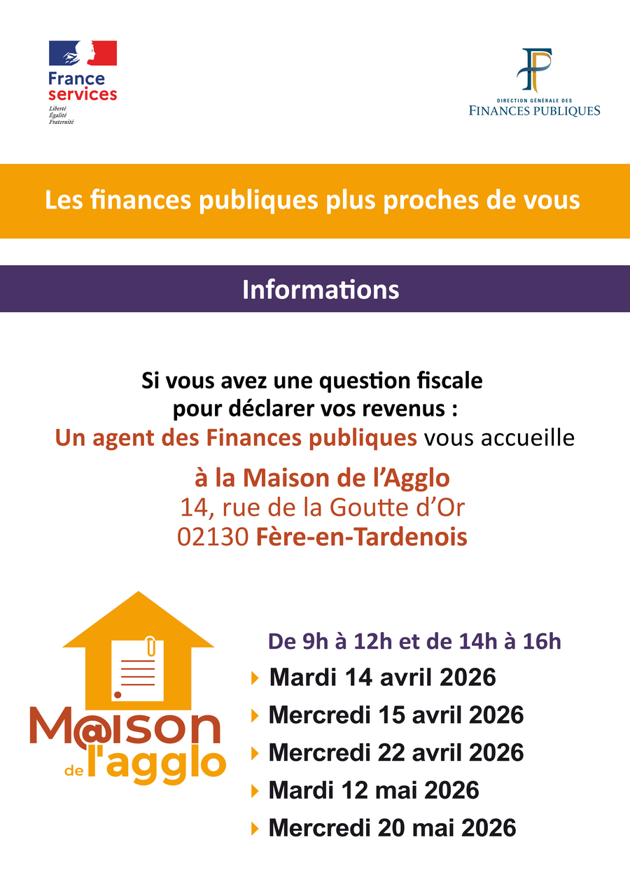 Dans le cadre de la campagne déclarative, les Maisons de l’Agglomération accueilleront des agents des finances publiques afin d’accompagner les usagers dans leurs démarches fiscales.