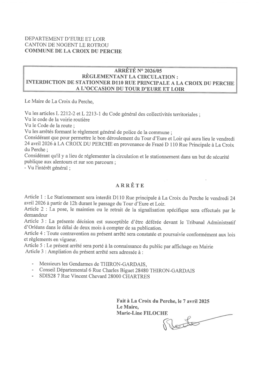 Le tour d'Eure-et-loir le 24 avril passera entre 12h30 et 14h30 dans la rue principale. Toute les personnes concernées devront déplacer leurs véhicules afin de faciliter le passage des cyclistes. Dans ce cadre un arrêté sera publié prochainement