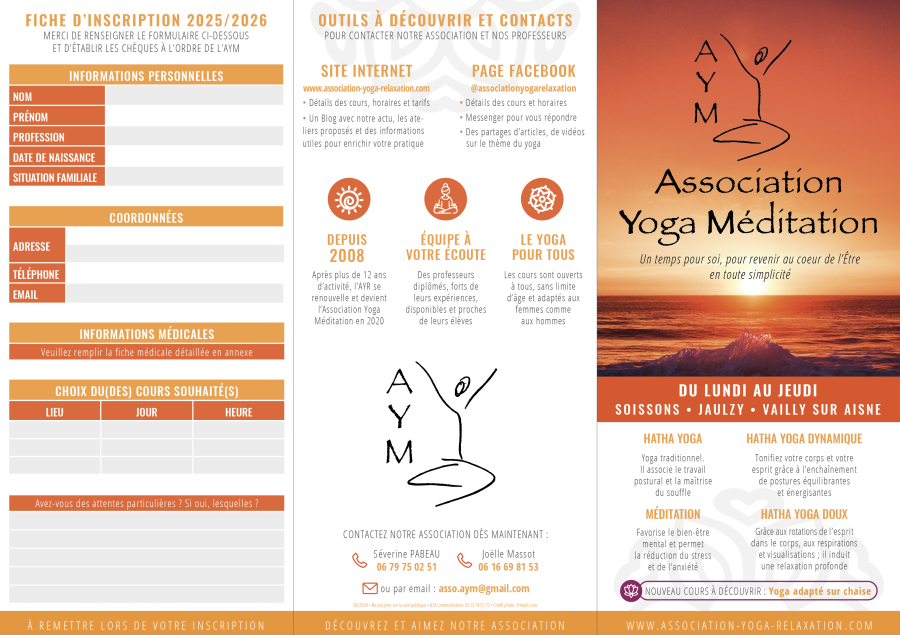 ATTENTION à compter du mois de MAI, les inscriptions se feront dorénavant en ligne.