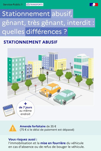 Le code de la route dans son article R417-12 donne la définition du stationnement abusif, c'est à dire supérieur à 7 jours consécutif. Cet article précise également les sanctions prévues.
