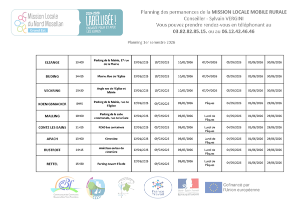 Vous trouverez ci joint le planning de la Mission Locale Mobile Rurale pour le premier semestre 2026