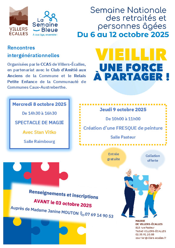Organisées par le CCAS de Villers-Écalles, en partenariat avec le Club d’Amitié aux Anciens de la Commune et le Relais Petite Enfance de la Communauté de Communes Caux-Austreberthe
