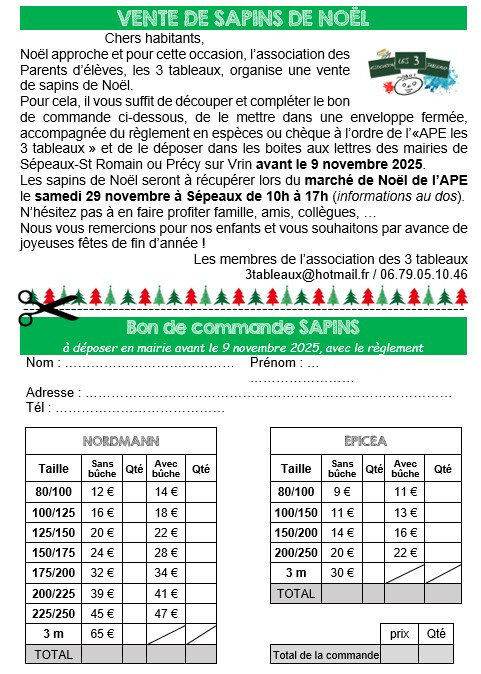 Vous pouvez déposer votre commande dans les boites aux lettres des mairies de Précy et Sépeaux ou la donner directement à la boulangerie Le Pain du Vrin (date butoir: 9 novembre).