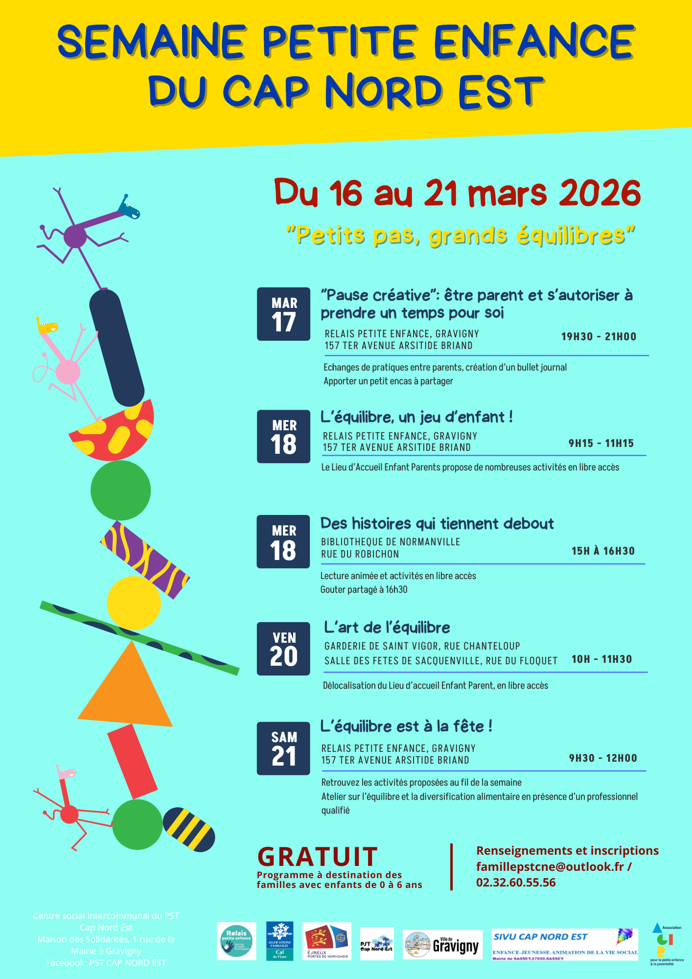 Pour votre information, le centre social du PST Cap Nord Est propose un Lieu d'Accueil Enfant Parent qui s’adresse aux familles et à leurs enfants âgés de 0 à 6 ans.