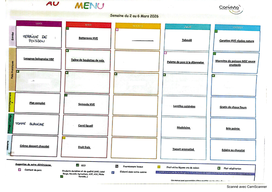 Pour toute information à transmettre concernant la présence ou l'absence de votre enfant pour la restauration scolaire :