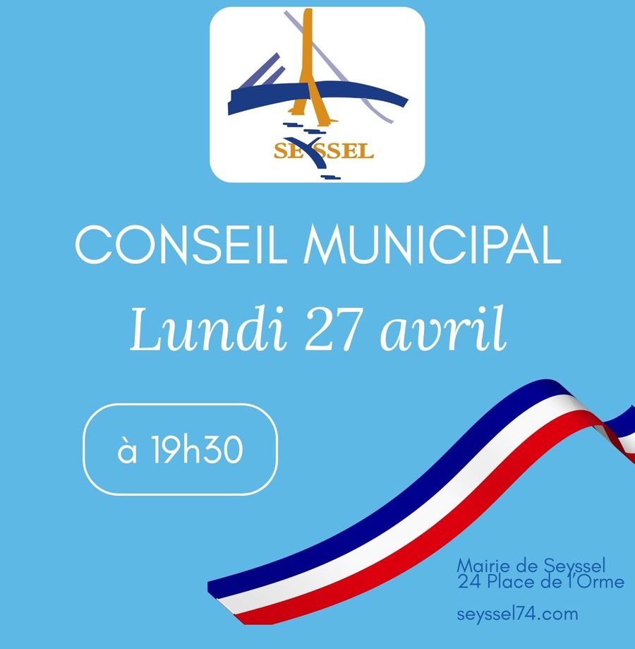 Le prochain Conseil Municipal se déroulera le lundi 27 avril 2026 à 19h30 en mairie. Ordre du jour : https://seyssel74.com/index.php/2026/04/22/prochain-conseil-municipal-le-27-avril-2026/