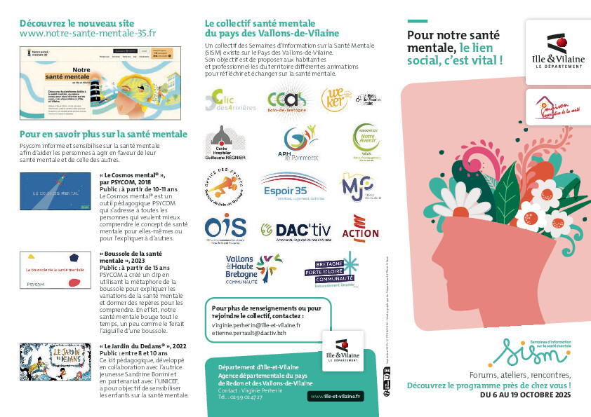 Les Semaines d’Information sur la Santé Mentale (SISM) se tiendront du 4 octobre au 19 octobre avec pour thème :