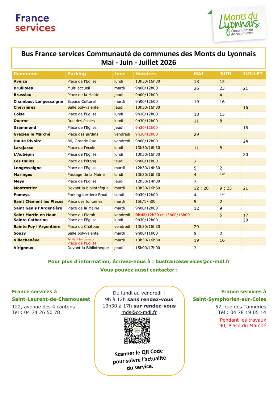 Le service sera délocalisé à la mairie de Saint-Symphorien-sur-Coise et,