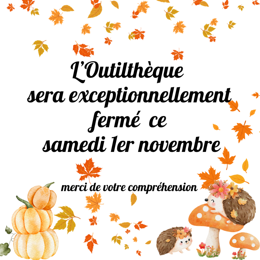 l'Outilthèque sera exceptionnellement fermée ce Samedi 1er Novembre !