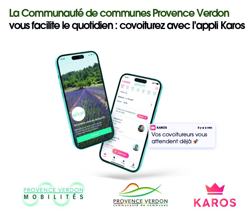 La Communauté de communes Provence Verdon soutient le covoiturage avec l’application Karos
