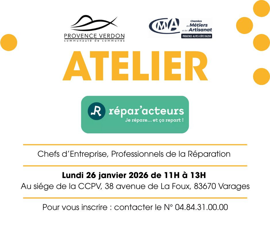 ⚠️ À compter de janvier 2026, la permanence de Varages se fera au siège de la Communauté de communes :