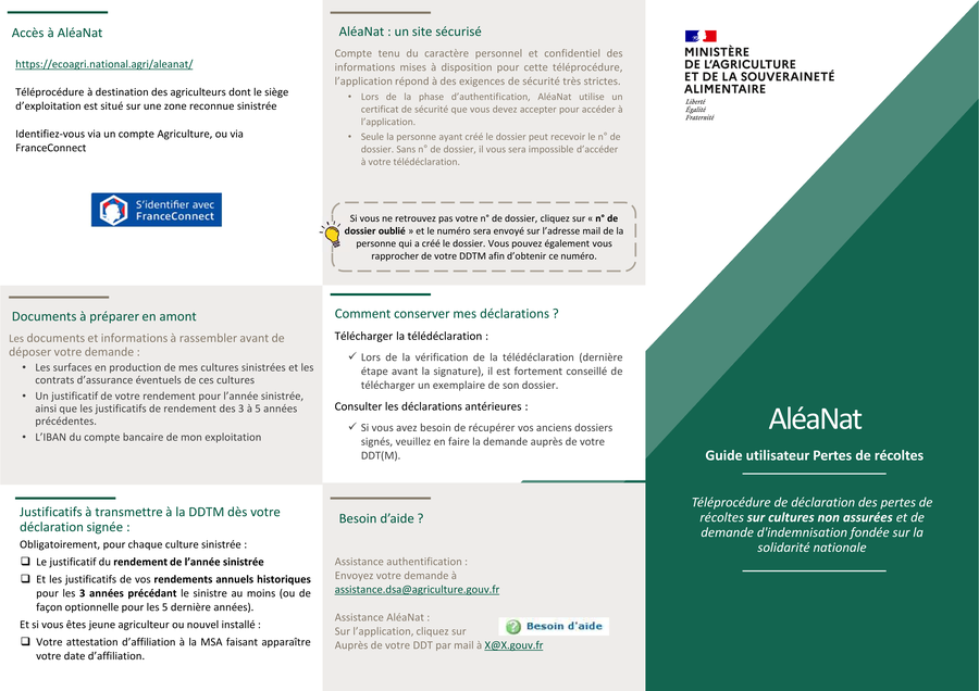 Les demandes d’indemnisation se font par le biais de la téléprocédure AléaNat ouverte du 27/03/2026 au 24/04/2026. Les agriculteurs devront se rendre sur la plateforme AléaNat :