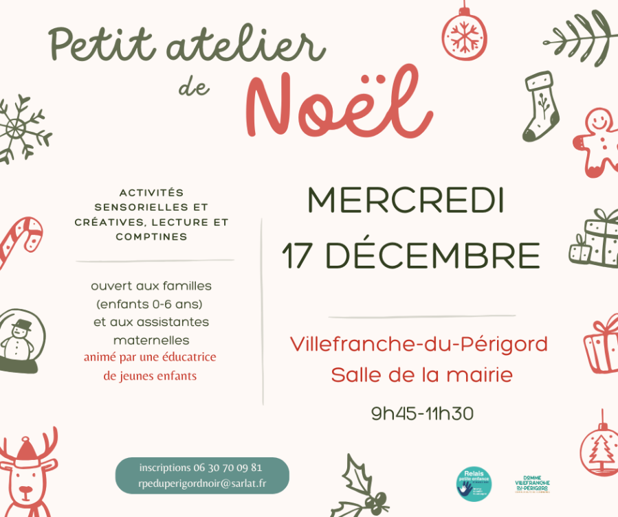 ▪️ samedi 13 décembre de 10h à 13h, au foyer rural de Villefranche-du-Périgord,