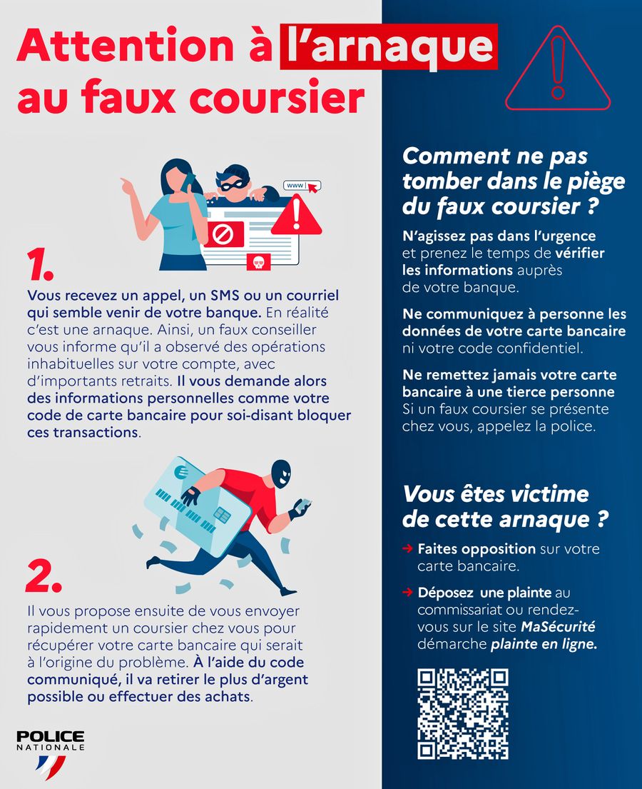 - Votre banque ne vous demandera jamais de remettre votre carte et votre code à un coursier.