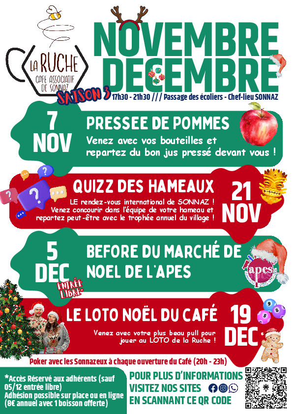 Croziflette, buvette, exposants, lecture de contes, Père Noël