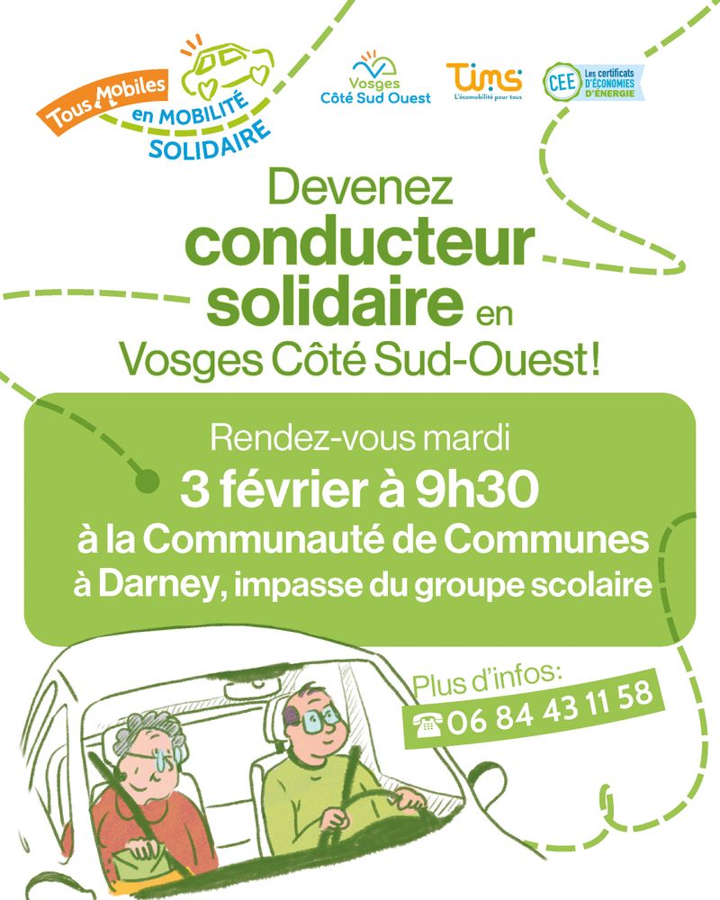 La Communauté de Communes Les Vosges Côté Sud-Ouest organise une réunion d’information, ouverte à tous, sur la mise en place de la mobilité solidaire !