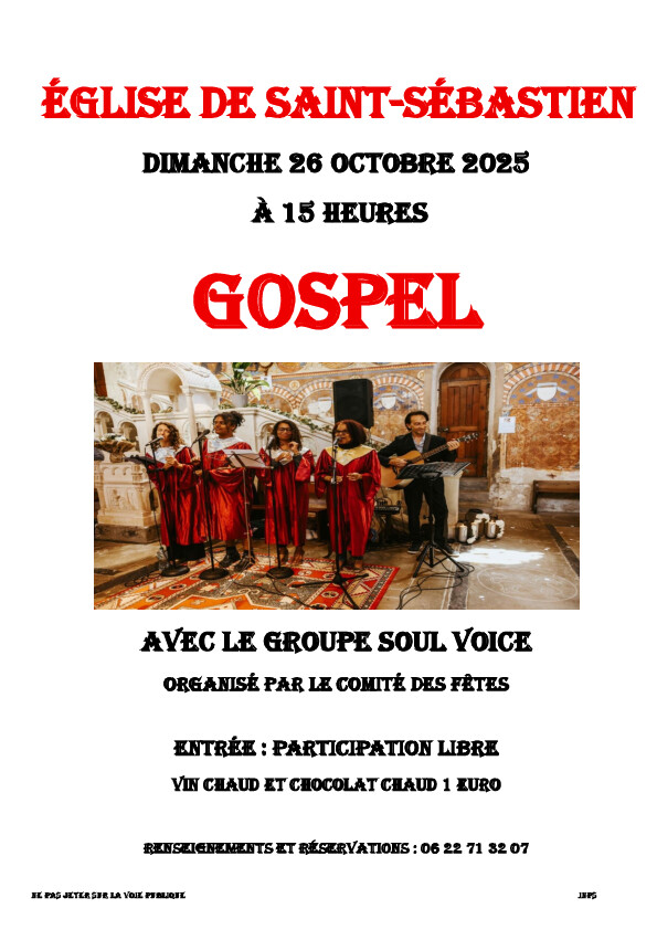 Le Comite des fêtes St Sebastien vous invite à un concert de Gospel dans l’église