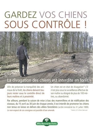 ✅Pour prévenir la destruction des oiseaux et de toutes espèces de gibier et pour favoriser leur repeuplement, il est interdit de laisser divaguer les chiens dans les terres cultivées ou non, les prés, les vignes, les vergers, les bois, ainsi que dans les marais et sur le bord des cours d'eau, étangs et lacs. " Dans les bois et forêts, il est interdit de promener des chiens non tenus en laisse en dehors des allées forestières pendant la période du 15 avril au 30 juin. "