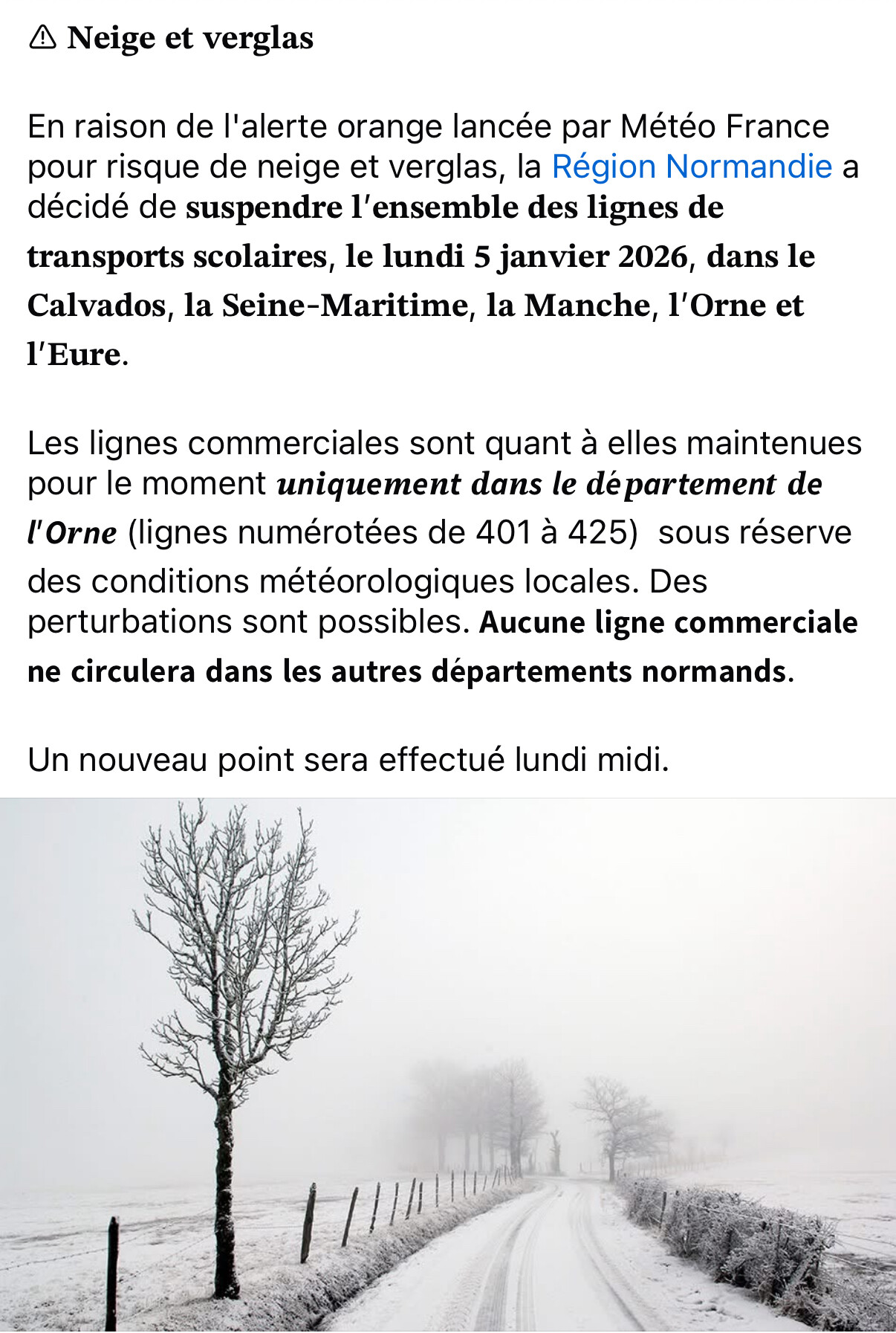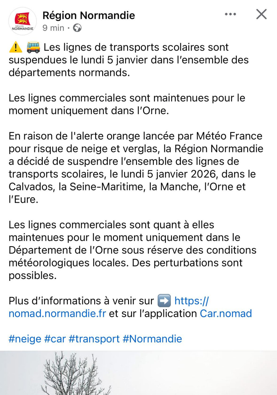 Comme aujourd'hui, il n'y aura pas de transport scolaire et cantine demain.