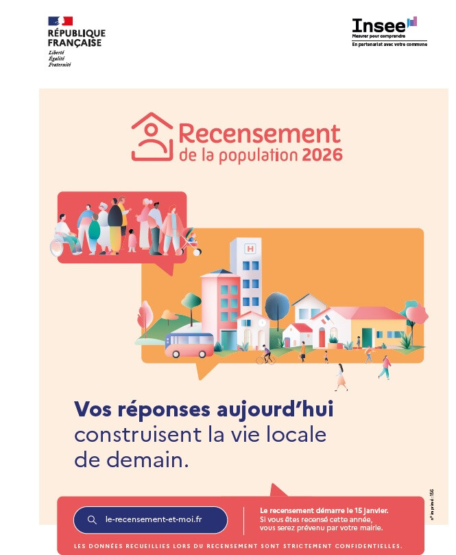 👉 Vous pourrez vous recenser en ligne à partir du 15 janvier 2026 sur le-recensement-et-moi.fr grâce aux codes remis par l’agent recenseur.