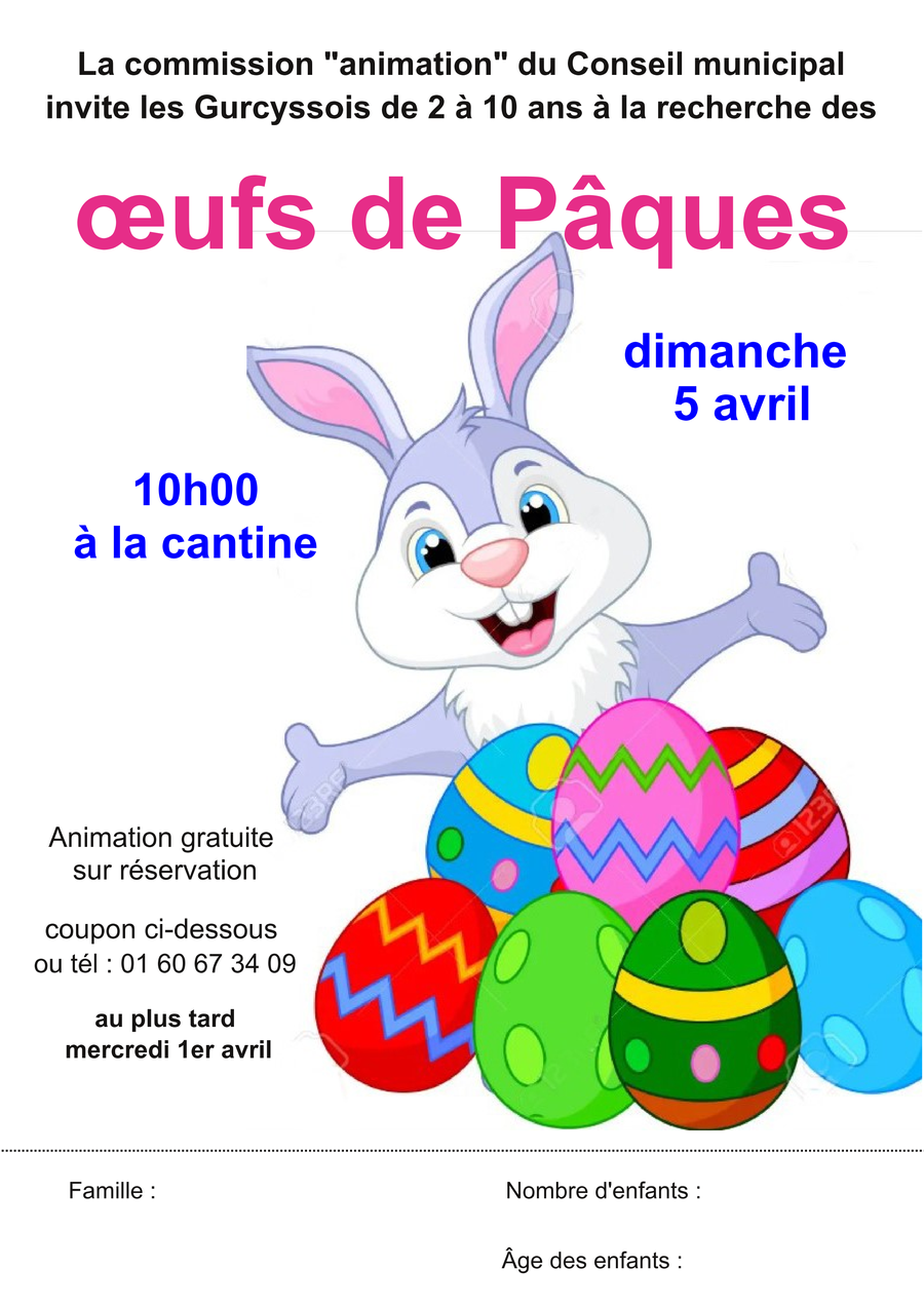 Les jeunes Gurcyssois de 2 ans à 10 ans sont invités à la recherche des œufs de Pâques.