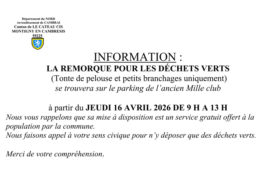 Consultez l'actualité des autres communes autour de Montigny-En-Cambrésis