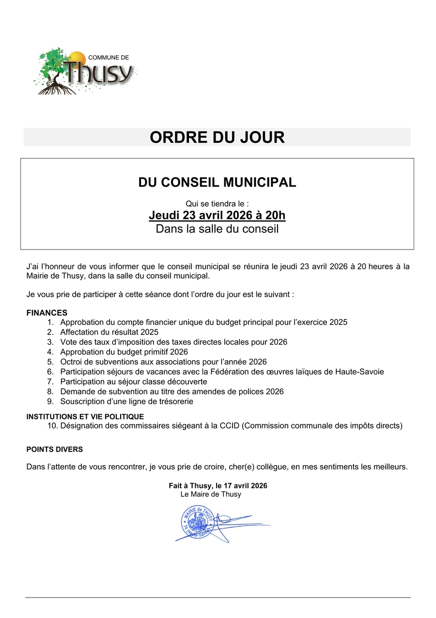 Le Conseil Municipal se réunira le