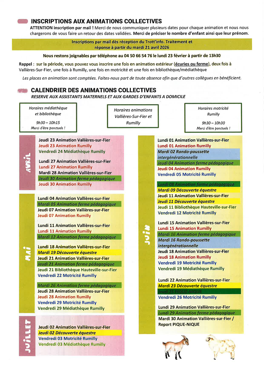Les inscriptions se font par téléphone UNIQUEMENT les lundis et jeudis après-midi au :