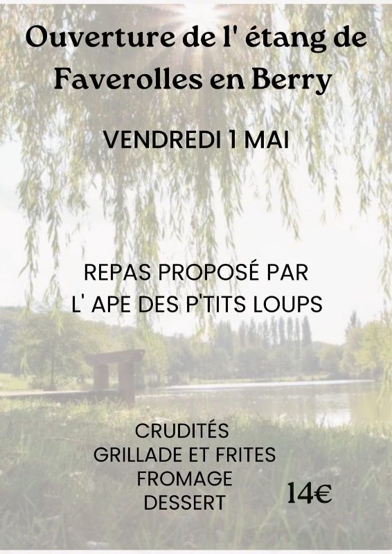 L’ouverture de la pêche au plan d’eau de FAVEROLLES-EN-BERRY est fixée au vendredi 1er mai 2026 et la fermeture le 04 octobre 2026,