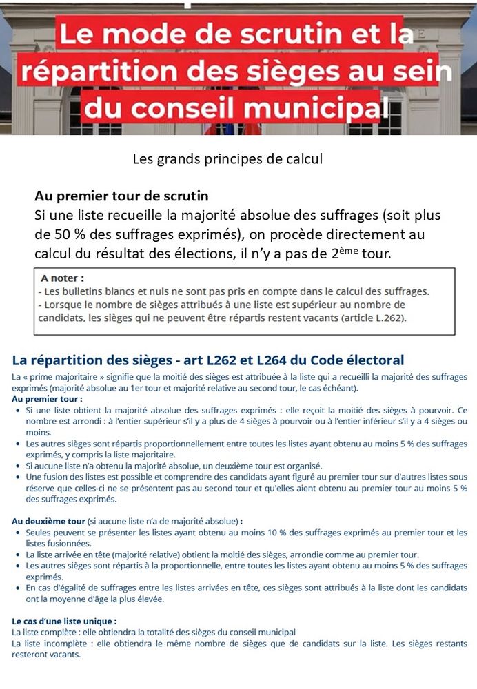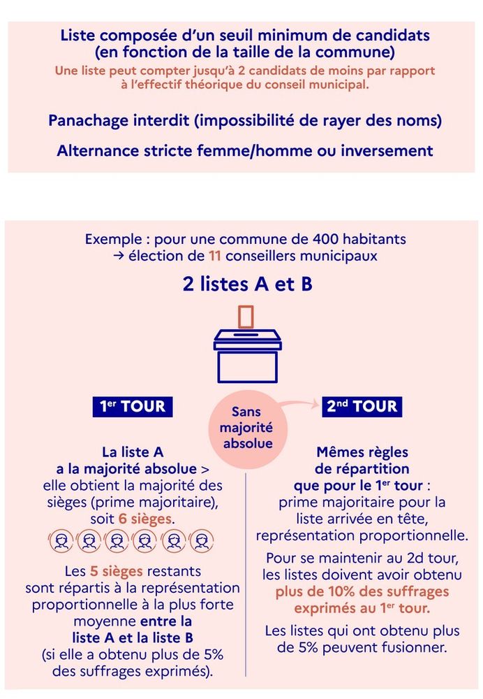 À partir de mars 2026, dans toutes les communes, le mode de scrutin applicable sera donc un scrutin de liste à deux tours, avec dépôt de listes de candidats et suppression du panachage.