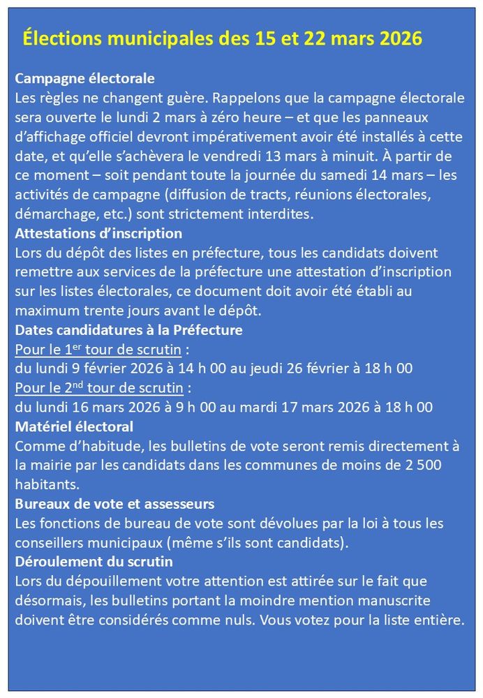26 février 2026 (18 heures) : date limite de dépôt des candidatures pour le premier tour