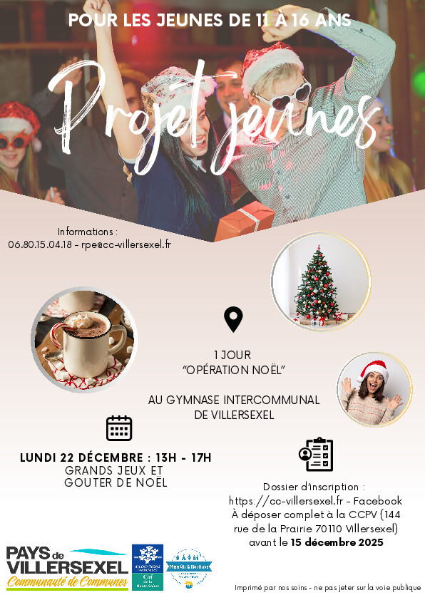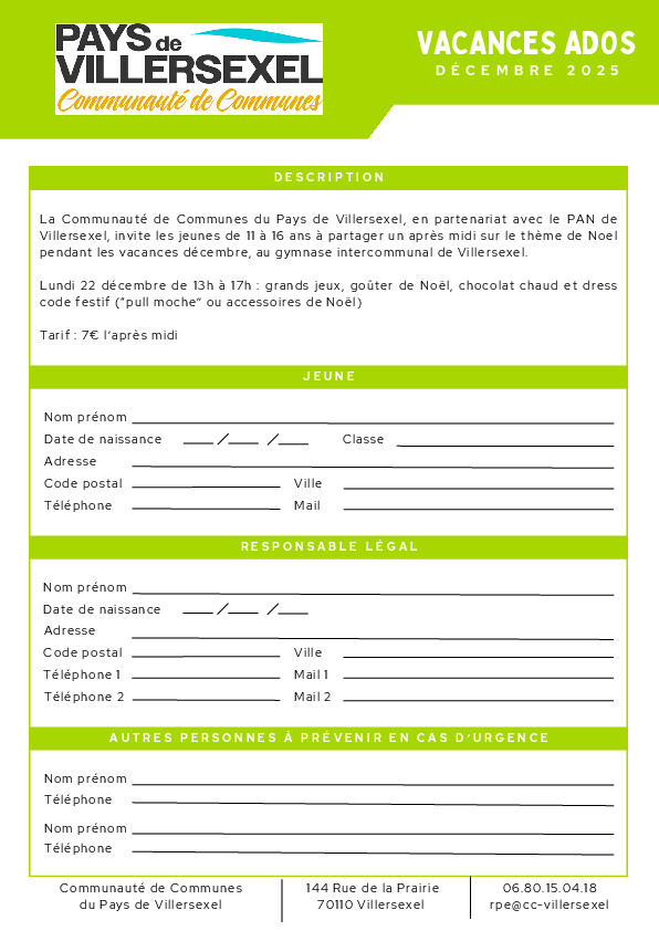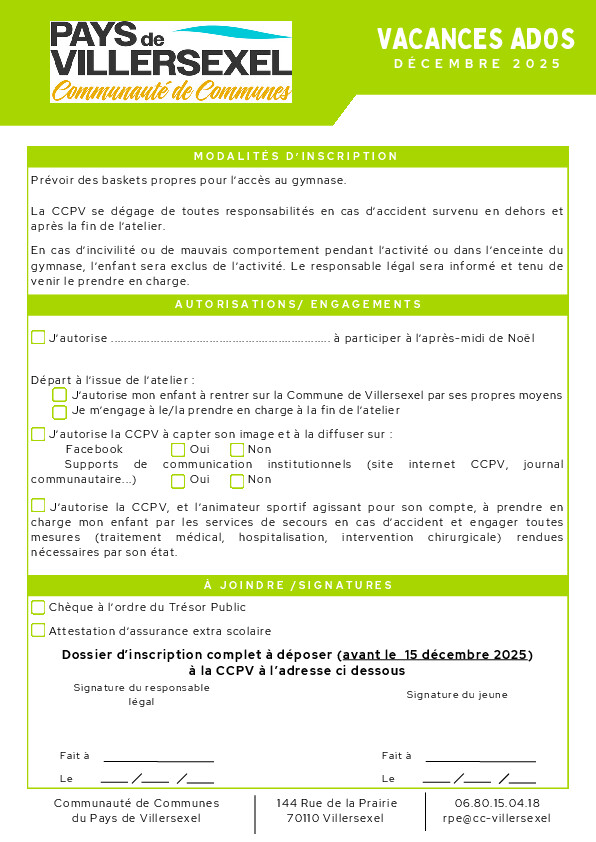 Formulaire d'inscription disponible ci-dessous ou à l'accueil de la CCPV.