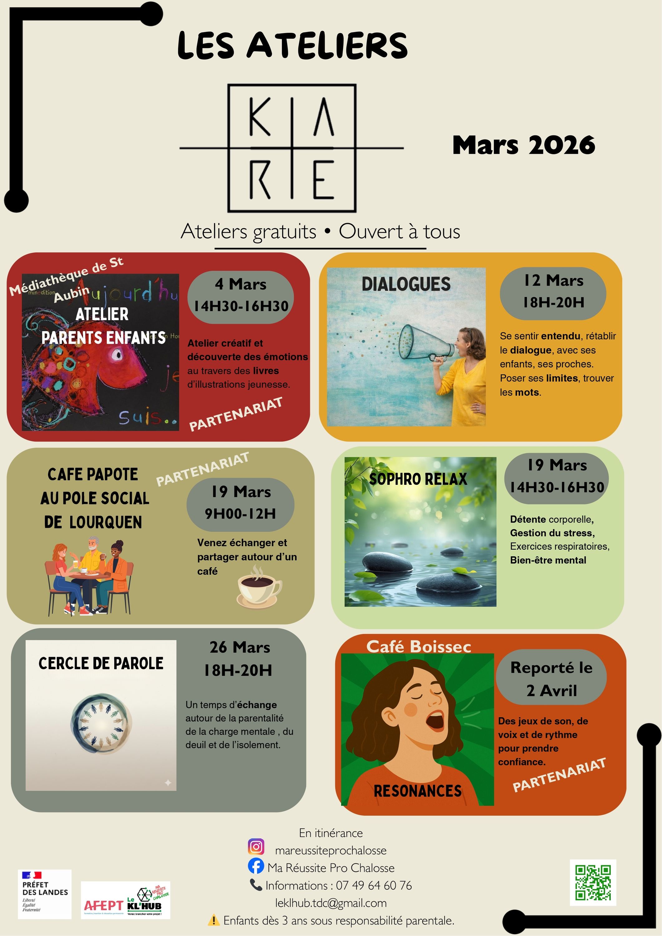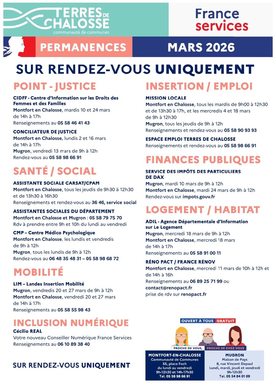 • Permanences physiques : rendez-vous à la salle polyvalente (aux arènes) de 9h00 à 12h00 les samedis 28 mars, 4 avril et 11 avril.