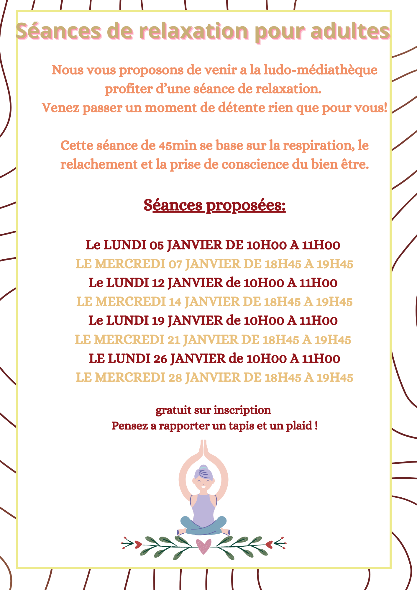 🧘De vous détendre avec les séances de relaxation.