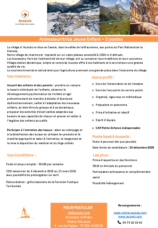 Si vous êtes intéressés vous pouvez contacter : mae.cognet@hautemaurienne.com