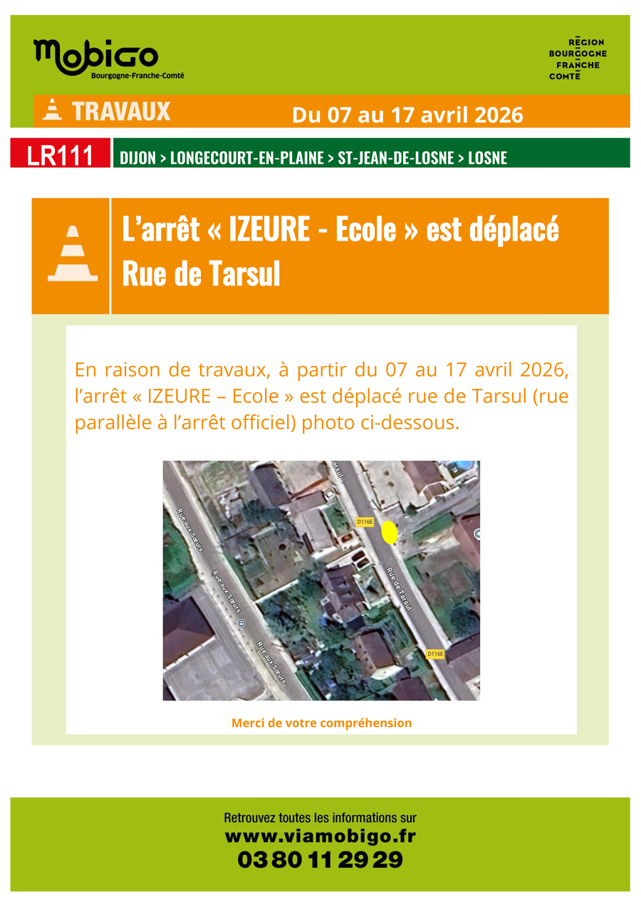 Déplacement de l'arrêt de but de la rue aux Sœurs à la rue de Tarsul pendant les vacances du