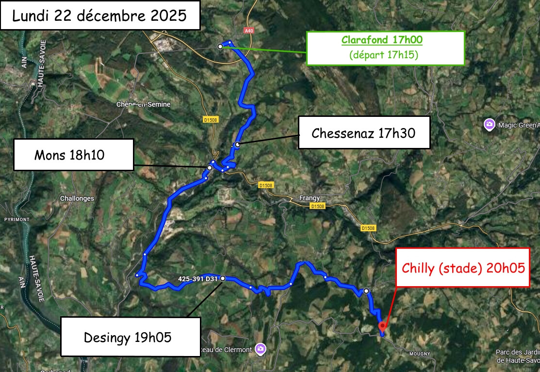 - Départ 17h15 de Clarafond au niveau de la salle des fêtes