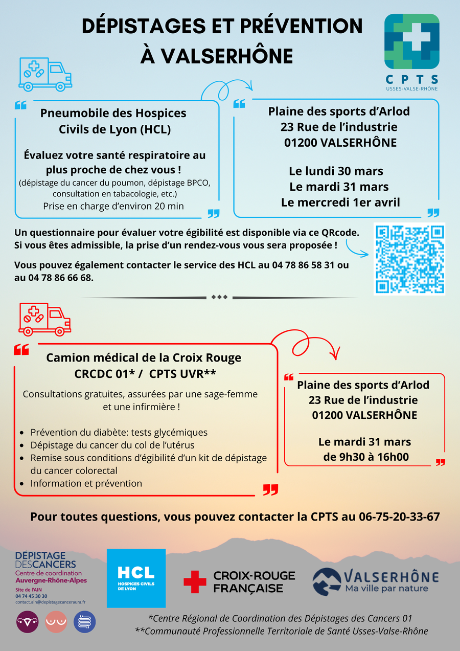 Ci-dessous, toutes les actions de dépistage et de prévention qui auront lieu sur le territoire de la CPTS (Communauté Professionnelle Territoriale de Santé) Usses-Valse-Rhône.