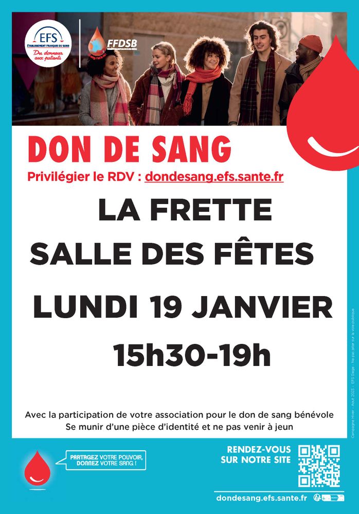 L'Établissement Français du Sang et l'association "Le don de Sang au pays de Mandrin" organisent une collecte de sang