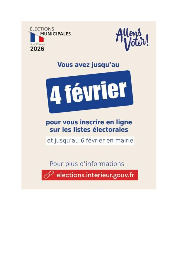 âą Inscription possible en mairie jusquâau 6 fĂ©vrier 2026