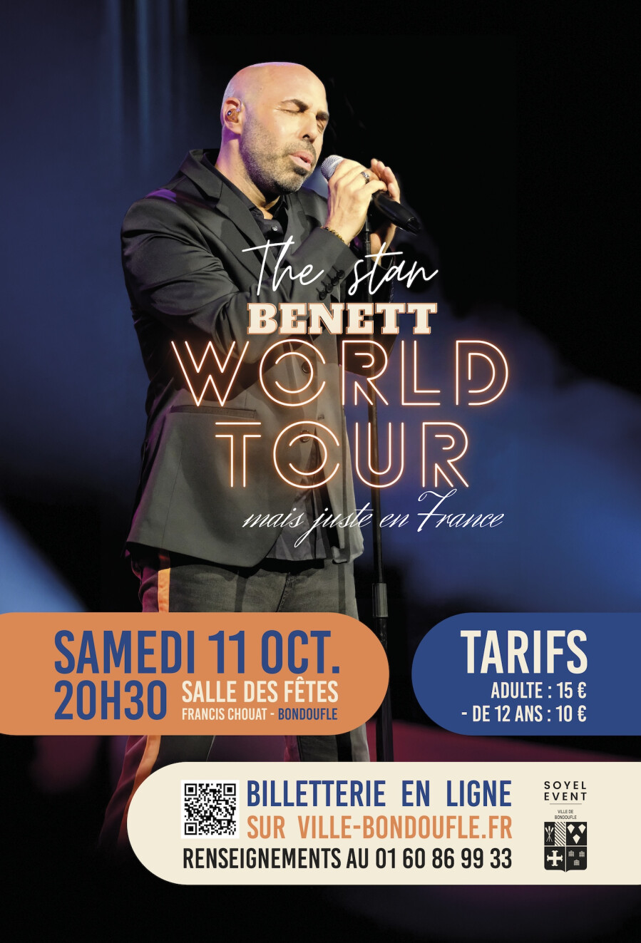 Samedi 11 octobre 2025, la municipalité vous propose Stan Benett, performeur vocal Bondouflois, à la salle des fêtes Francis Chouat.