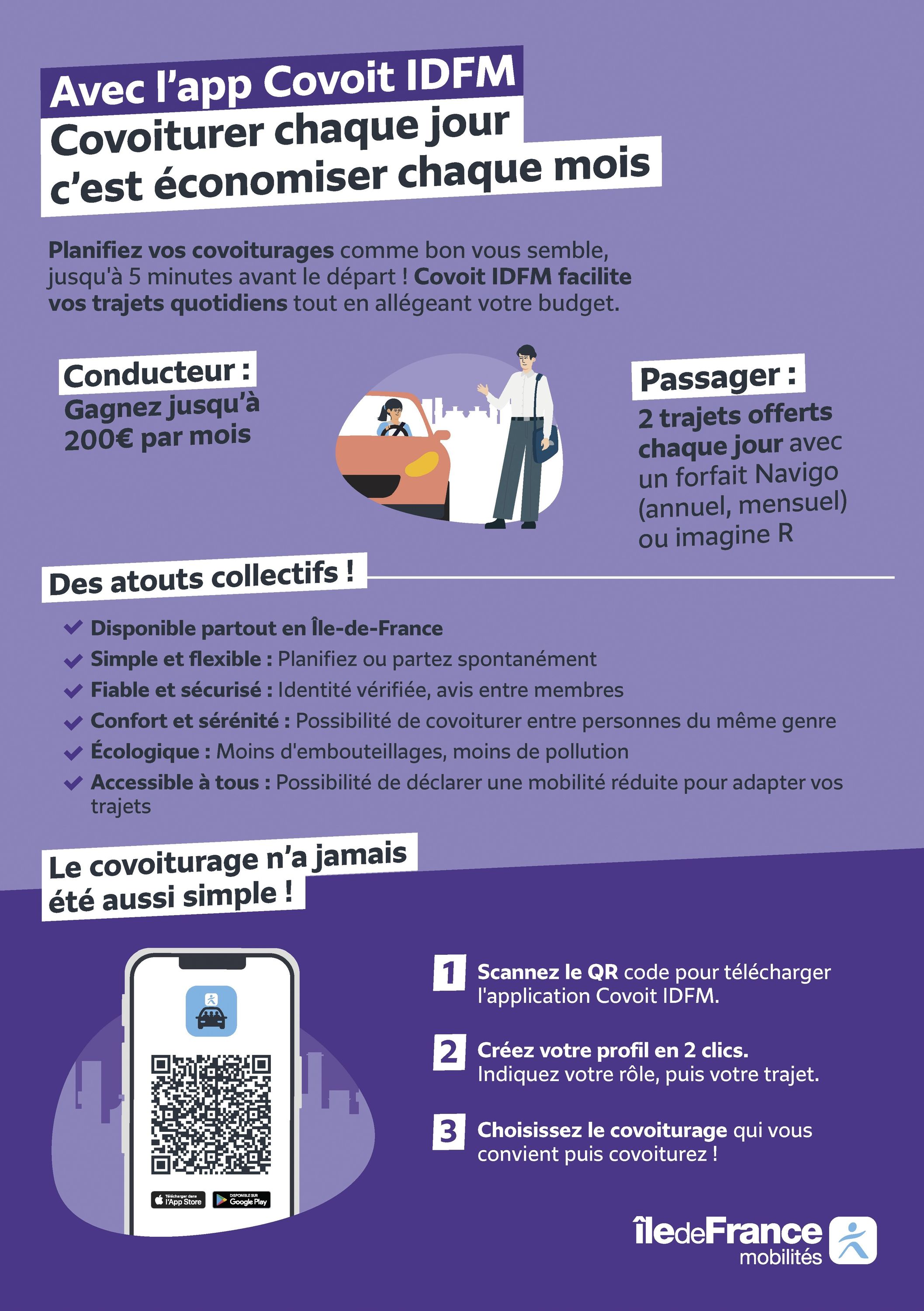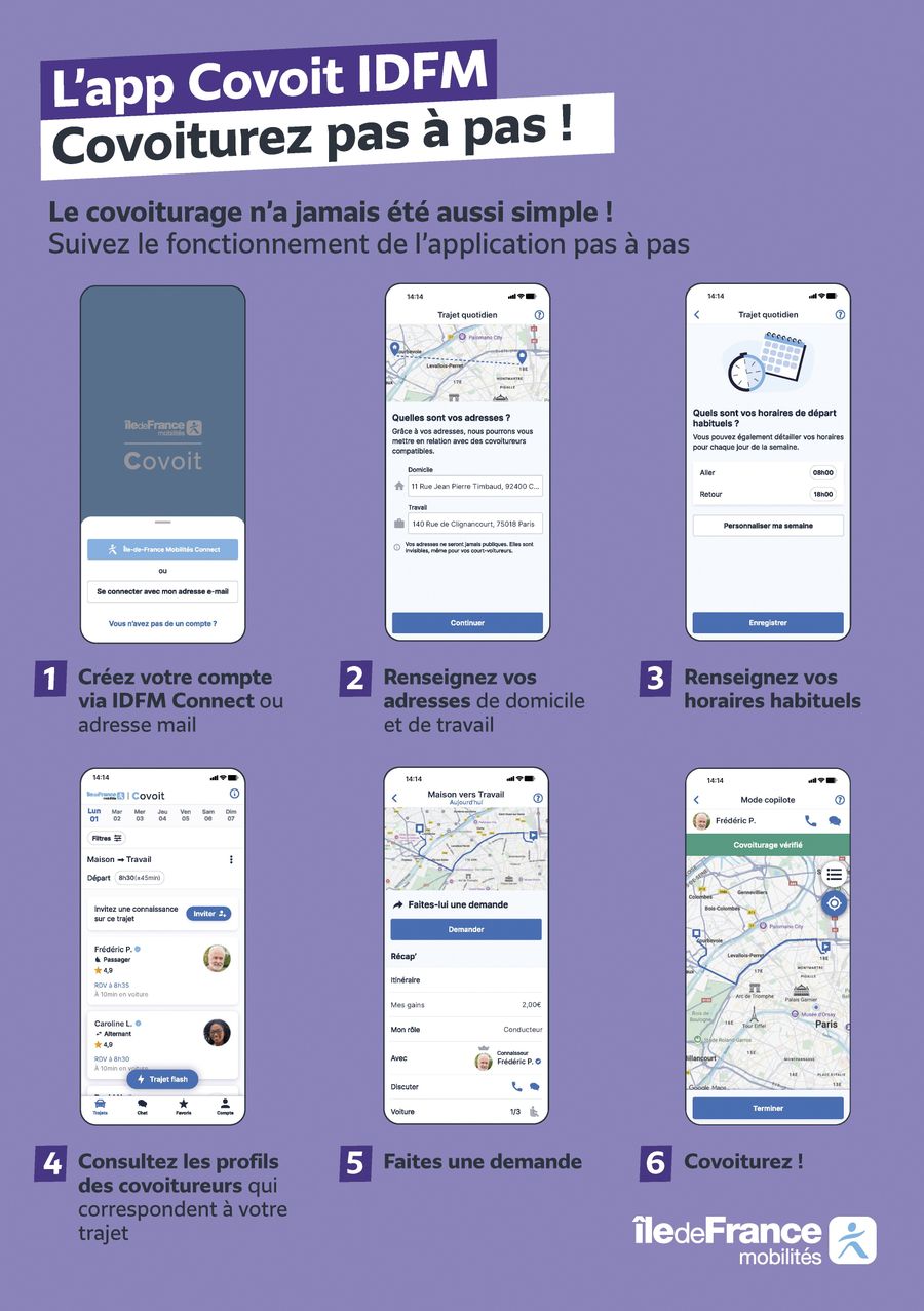 Pour vous accompagner, Île-de-France Mobilités propose l’application Covoit’ IDFM.