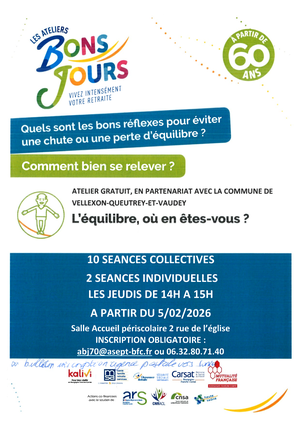 Après les Ateliers vitalité, sommeil, nutrition ,bien être : Nous vous proposons l'atelier l'équilibre où en êtes vous?