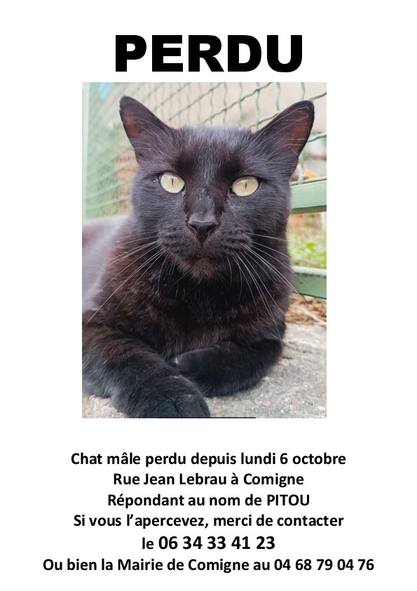 Si vous l'apercevez, merci de contacter le 06 34 33 41 23