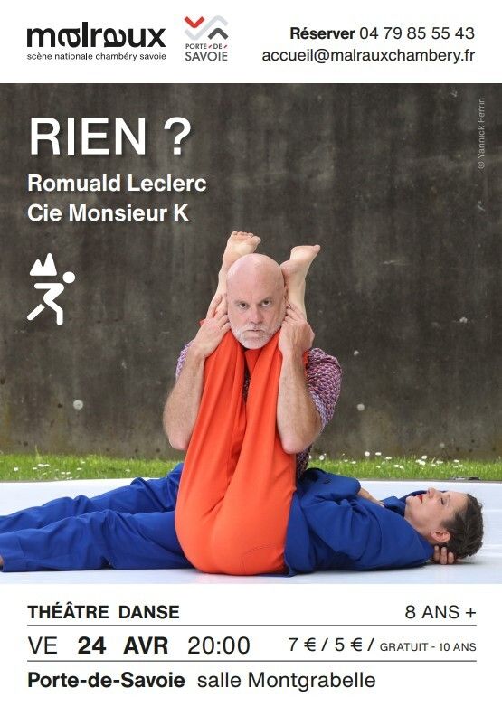Une soirée théâtre "Rien ?" est prévue le vendredi 24 avril 2026 à 20h à la salle Montgrabelle, présentée par la compagnie Monsieur K dans le cadre du dispositif Savoie Nomade par Malraux.