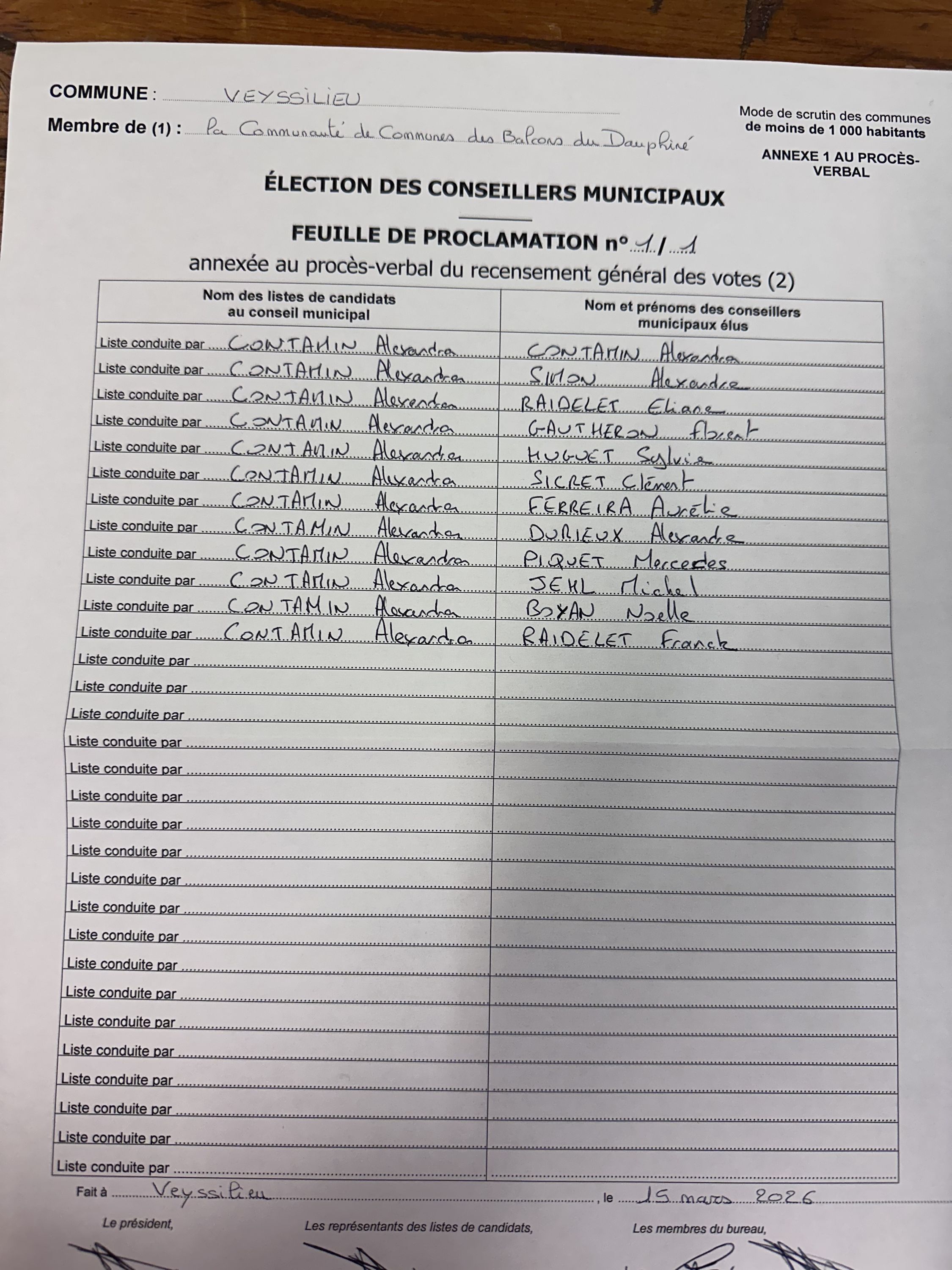 278 inscrits, 178 votants, 3 blancs et 2 nuls