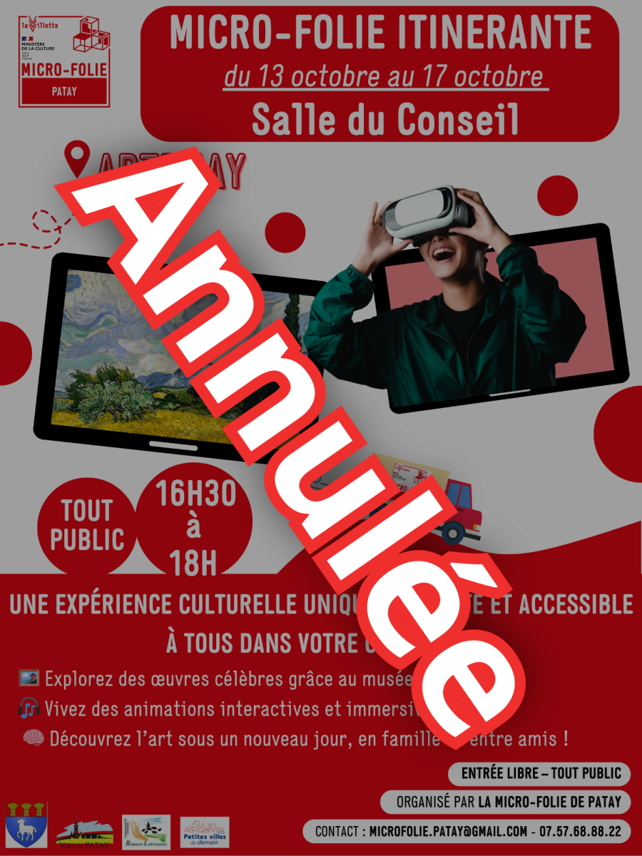 LâitinĂ©rance de la Micro-Folie, prĂ©vue du 13 au 17 octobre, est annulĂ©e.