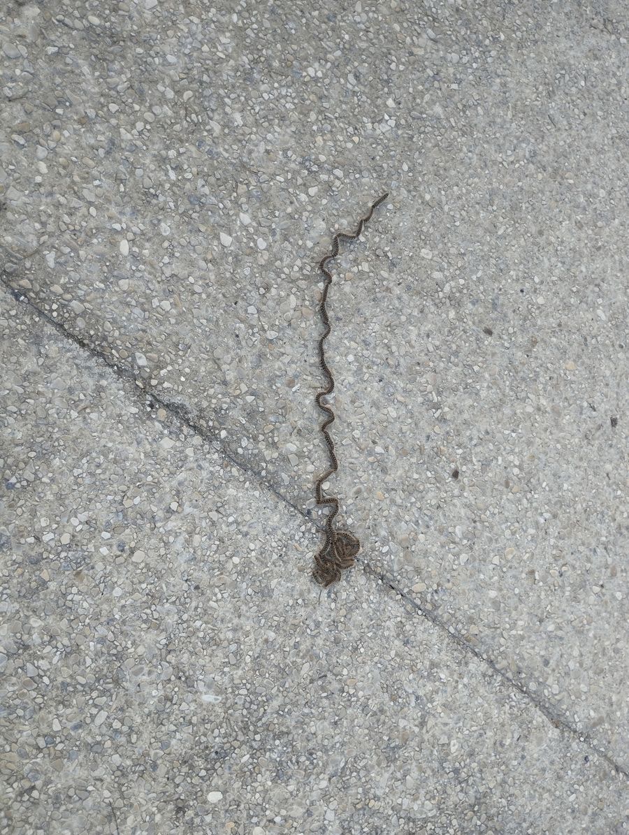 Ci-dessous une ligne de chenilles processionnaires aux abords de la salle polyvalente.