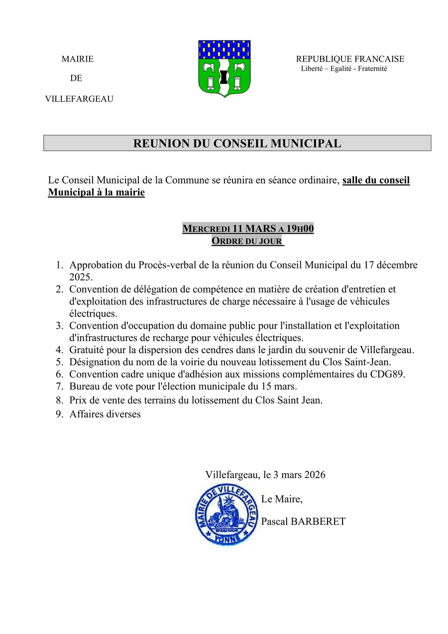 Contacter la mairie de Villefargeau